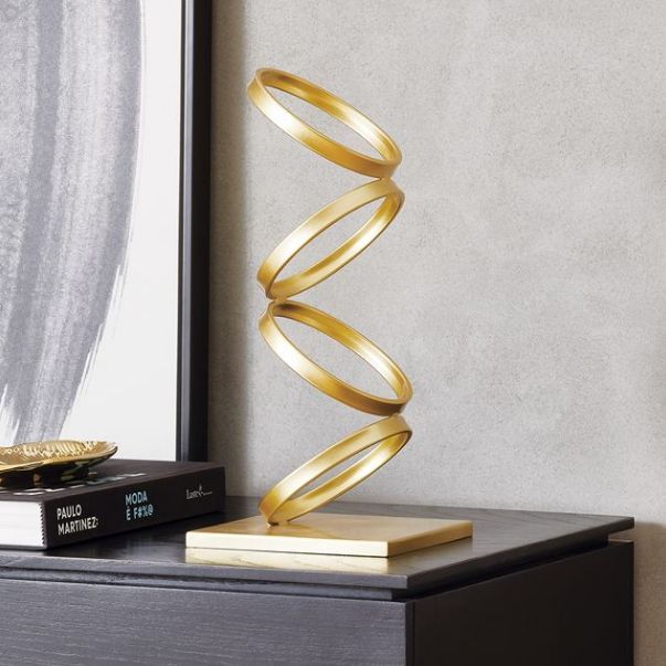 A escultura de anéis dourados em metal é um artigo de decoração ideal para salas, corredores, hall de entrada que deixará sua casa com um toque moderno e sofisticado. Ela se destaca pela cor dourada que não deixará de ser notada.